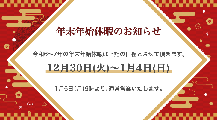 年末年始休暇のお知らせ